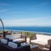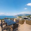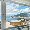 Il primo piano è composto da un salotto con divano e TV in un unico ambiente con cucina attrezzata e ampia terrazza panoramica con vista mare dotata di divani e poltrone;un tavolo da pranzo per 10 persone ed una jacuzzi riscaldabile esterna da 4 persone. Su questo piano troviamo due camere da letto matrimoniali (una con bagno privato), una camera con due letti singoli a castello e un ulteriore bagno.