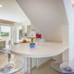 Il piano terra è composto da un ampio salotto con balcone panoramico con vista mare, tre divani, TV in un unico ambiente con cucina attrezzata con due tavoli da pranzo, tavolino da bar con sgabelli, lavastoviglie, frigorifero e freezer, forno e microonde, tostapane e bollitore. Ci sono due camere da letto matrimoniali con bagno privato e un bagno ospiti.